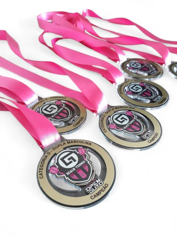 Cada medalha é desenvolvida de forma personalizada, podendo ser adaptada em materiais, cores, formatos e gravações para refletir a identidade do torneio ou evento.