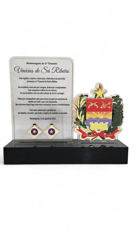 Cada peça permite gravações detalhadas, cores e formatos diferenciados, destacando mérito, dedicação e prestígio.