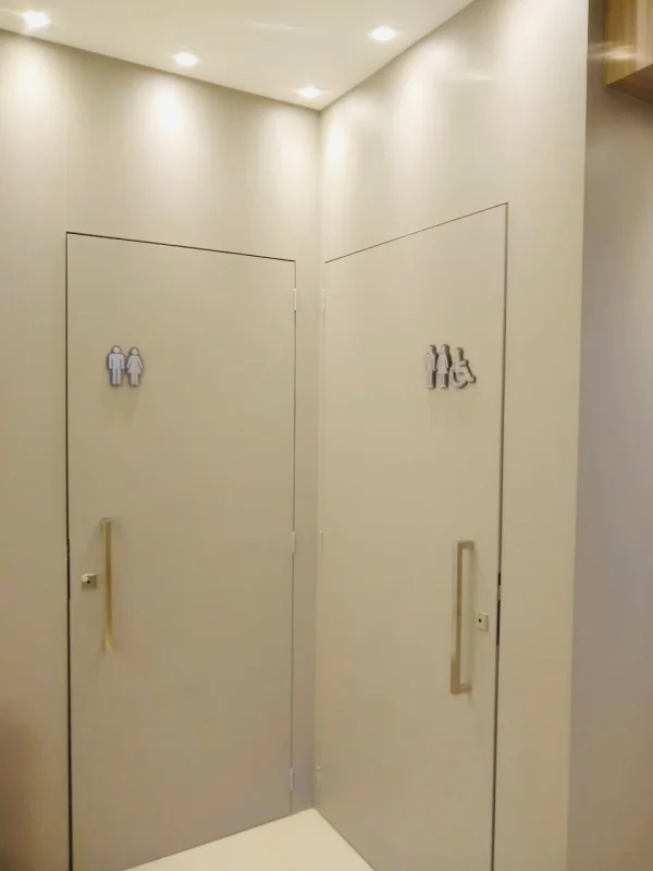 Além de orientar os usuários, diferenciando os banheiros masculinos, femininos e acessíveis, essas placas permitem uma personalização em cores, materiais, gravações e formatos, reforçando a identidade visual e a comunicação eficiente.
