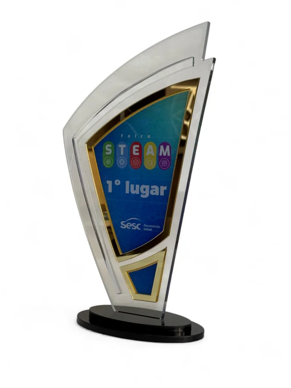 Além de premiar, o troféu de acrílico funciona como uma lembrança duradoura e um objeto de destaque visual.