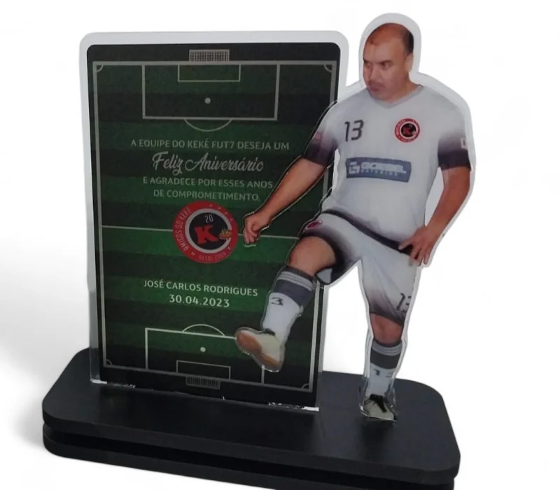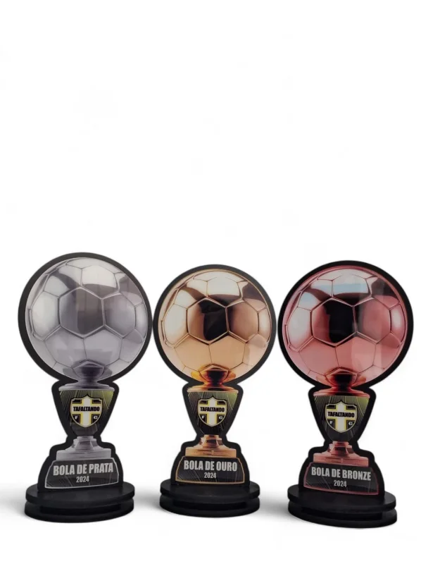 Os troféus de acrílico personalizados de futebol são leves, duráveis e versáteis, podendo ser moldados em diferentes formatos e tamanhos conforme a preferência do cliente.